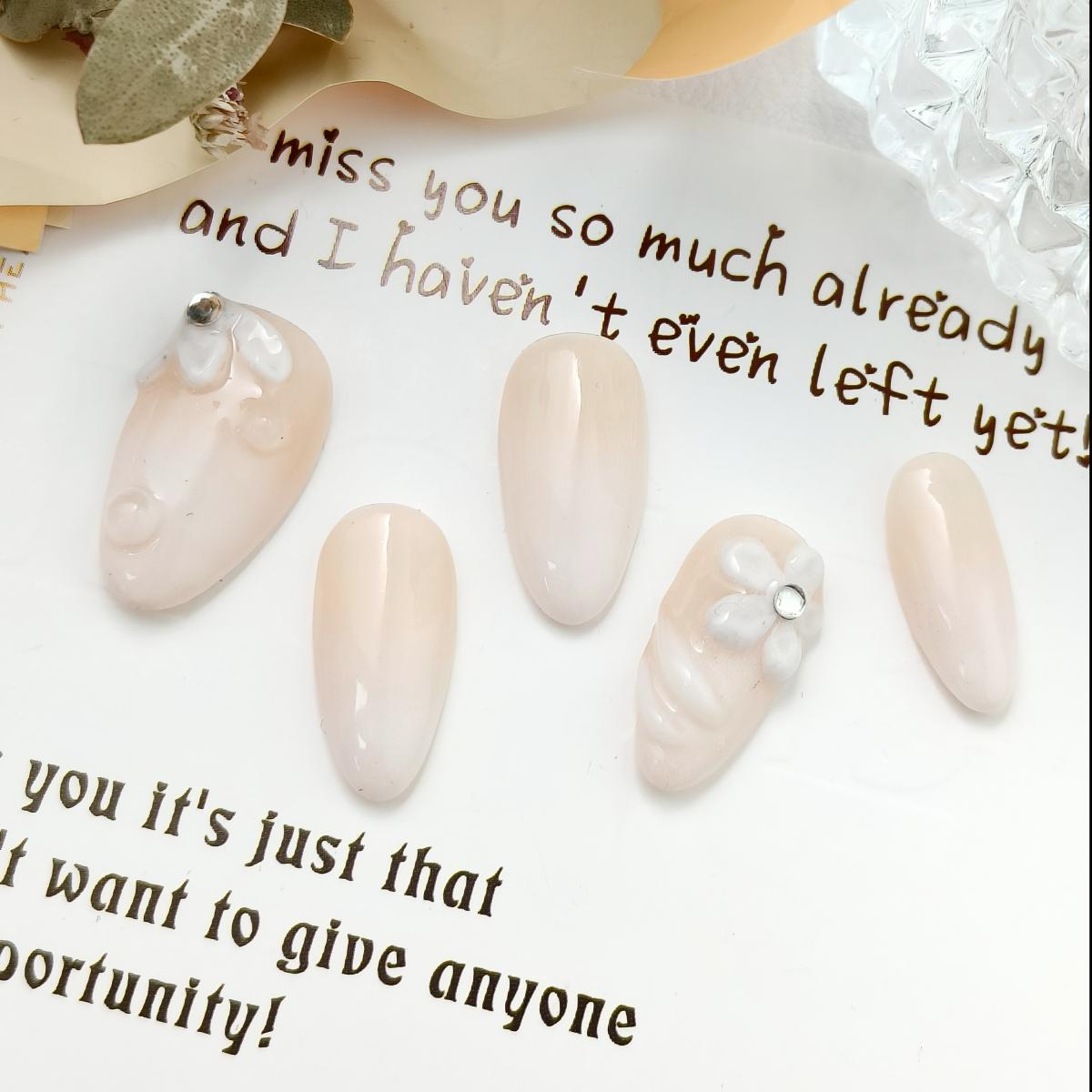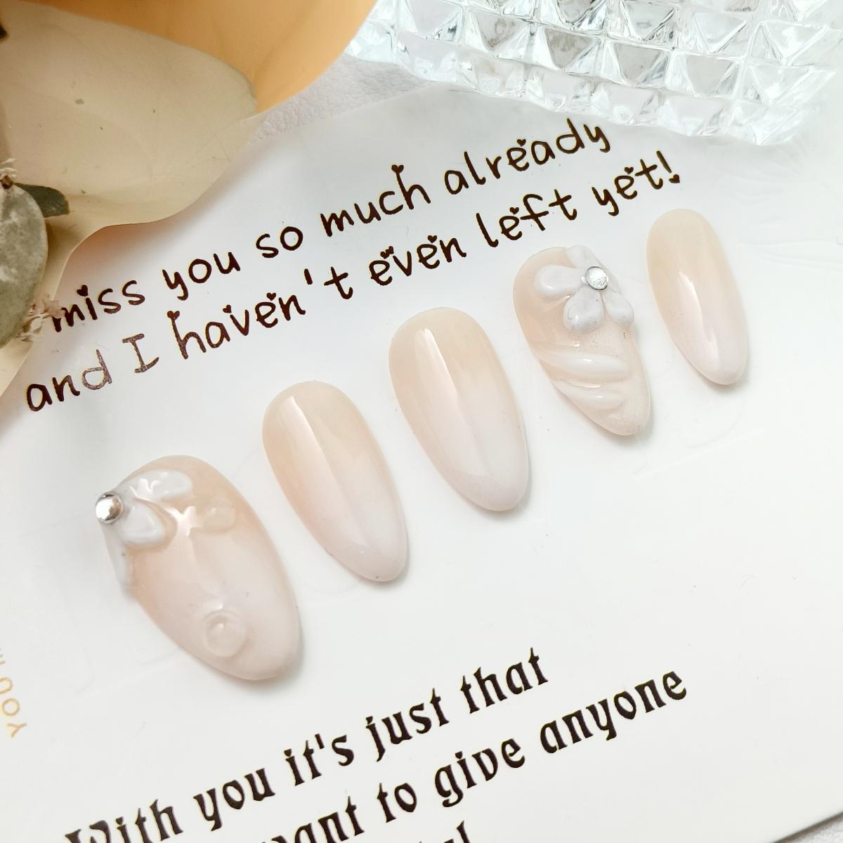 Creamy ivory bases with hand-placed pearl accents along the cuticle line, framed by a silk-matte finish. Slim oval shapes and a high-gloss topcoat mimic luxury manicure textures, while the pearls catch light with refined subtlety. Designed for minimalist enthusiasts who crave quiet opulenceideal for bridal looks, boardroom elegance, or elevating everyday ensembles. Vegan gel adhesives ensure seamless wear. For those who believe true sophistication speaks softly.